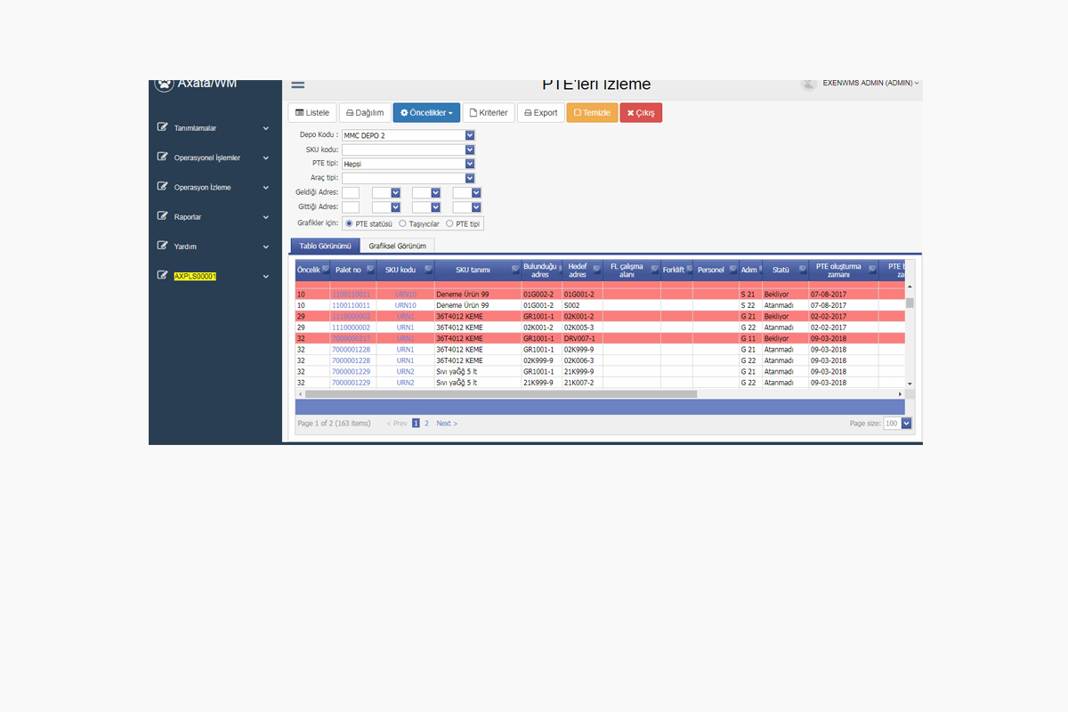 axata/WM, Depo bünyesinde icra edilen tüm operasyonları etkin bir şekilde, gerçek zamanlı yönetmek üzere tasarlanmış dinamik bir sistem olup kullanıcıların en kısa zamanda, en az kaynakla kağıtsız ve hatasız işlem yapabilmesine olanak sağlar.